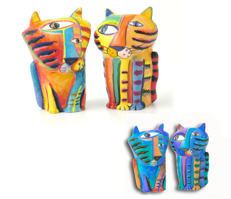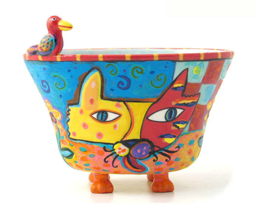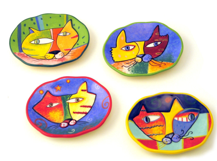 A collection of fun wonderful shapes of cat designs. Collaboration with the highly talented artist Rob Padilla. Extensive line of hanpainted ceramics for everyday use and collectibles. Sold in USA and Europe retail stores.