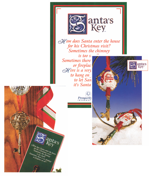 Holiday product design for seasonal gift markets. Christmas ornament and metal door hanger key to help Santa enter the house if you don't have a chimney. Created story legend, associated packaging and point of purchase merchandisers for retail displays. Sold both USA and international marketplaces by both small specialty stores, online retailers and department stores.